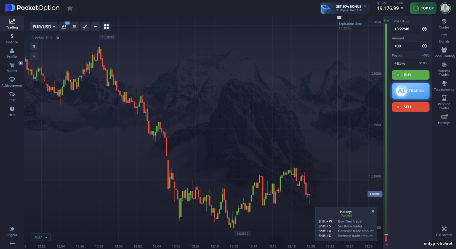 - Какие уникальные функции есть на платформе Pocket Option? — Здесь реализован полноценный социальный трейдинг: начинающие могут наблюдать за действиями опытных трейдеров и копировать их сделки в один клик. Также проводятся регулярные торговые турниры, где участники соревнуются в прибыли и могут выиграть ценные призы. Новым клиентам Pocket Option предлагает бонус 50% на первый депозит – это значит, пополнив, например, на $100, трейдер получит ещё $50 бонусных средств. Конечно, бонус накладывает условия по обороту, но он помогает увеличить стартовый капитал.