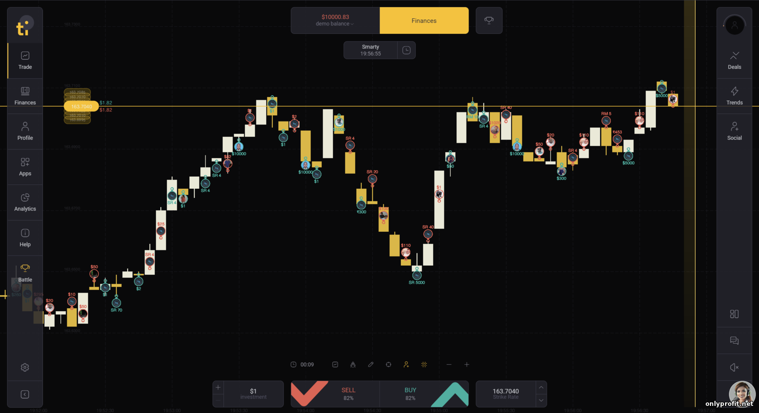 Stockity – молодая платформа для бинарного трейдинга, делающая упор на простоту интерфейса и геймификацию процесса торговли. Брокер привлекает новичков низкими требованиями к депозиту, щедрыми бонусами и регулярными турнирами с призами. Имеется демо-счёт на $10 000 для отработки навыков, а торговать можно как через веб-сайт, так и через мобильное приложение.